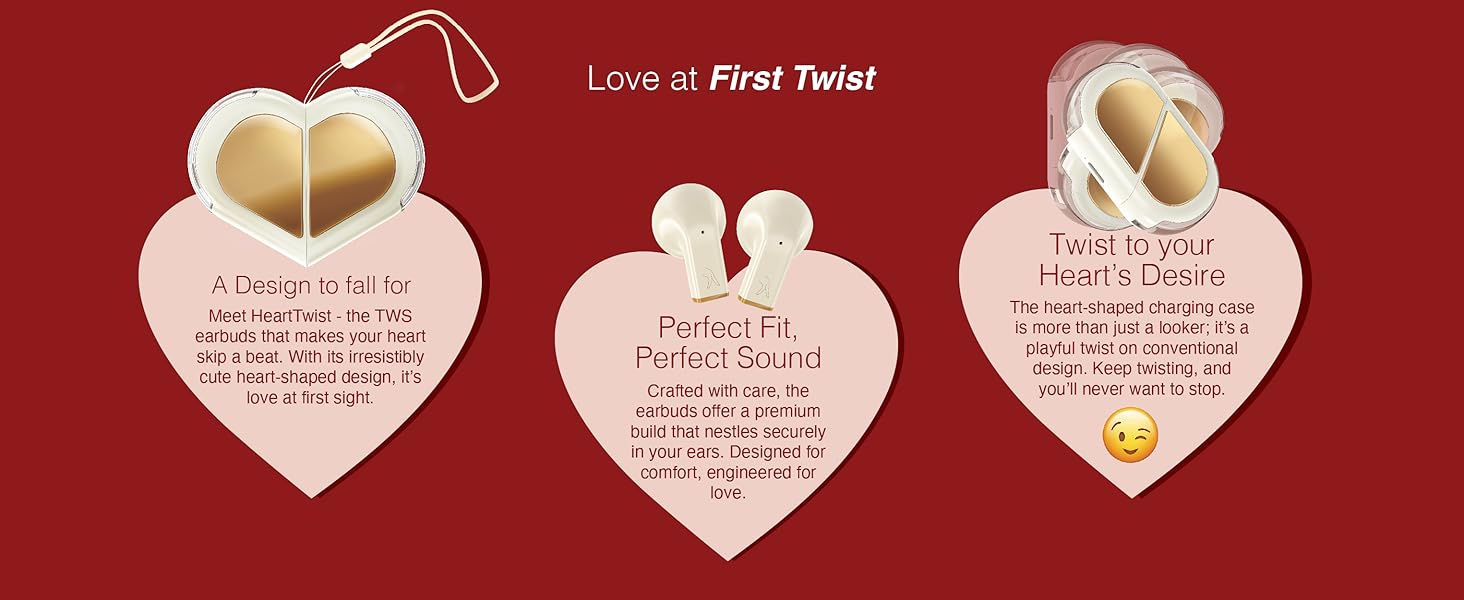 - Features a playful heart‑shaped charging case that twists into a capsule, striking a balance between aesthetics and novelty.