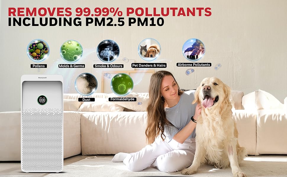 - Real time PM2.5 level display. CADR of upto 550 m3/h and coverage area of up to 852.5 square feet.
