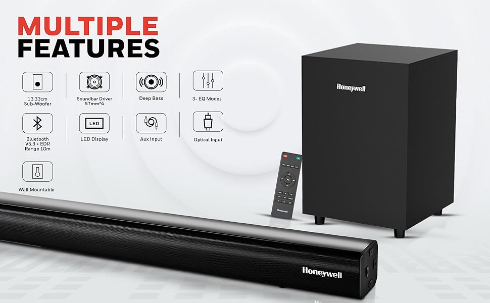 - It houses four 51 mm full-range drivers in the soundbar, engineered for crisp and balanced audio reproduction