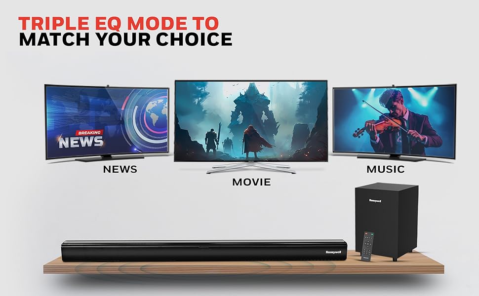 - Includes three EQ presets—Music, Movie, News—to optimize sound for different content types