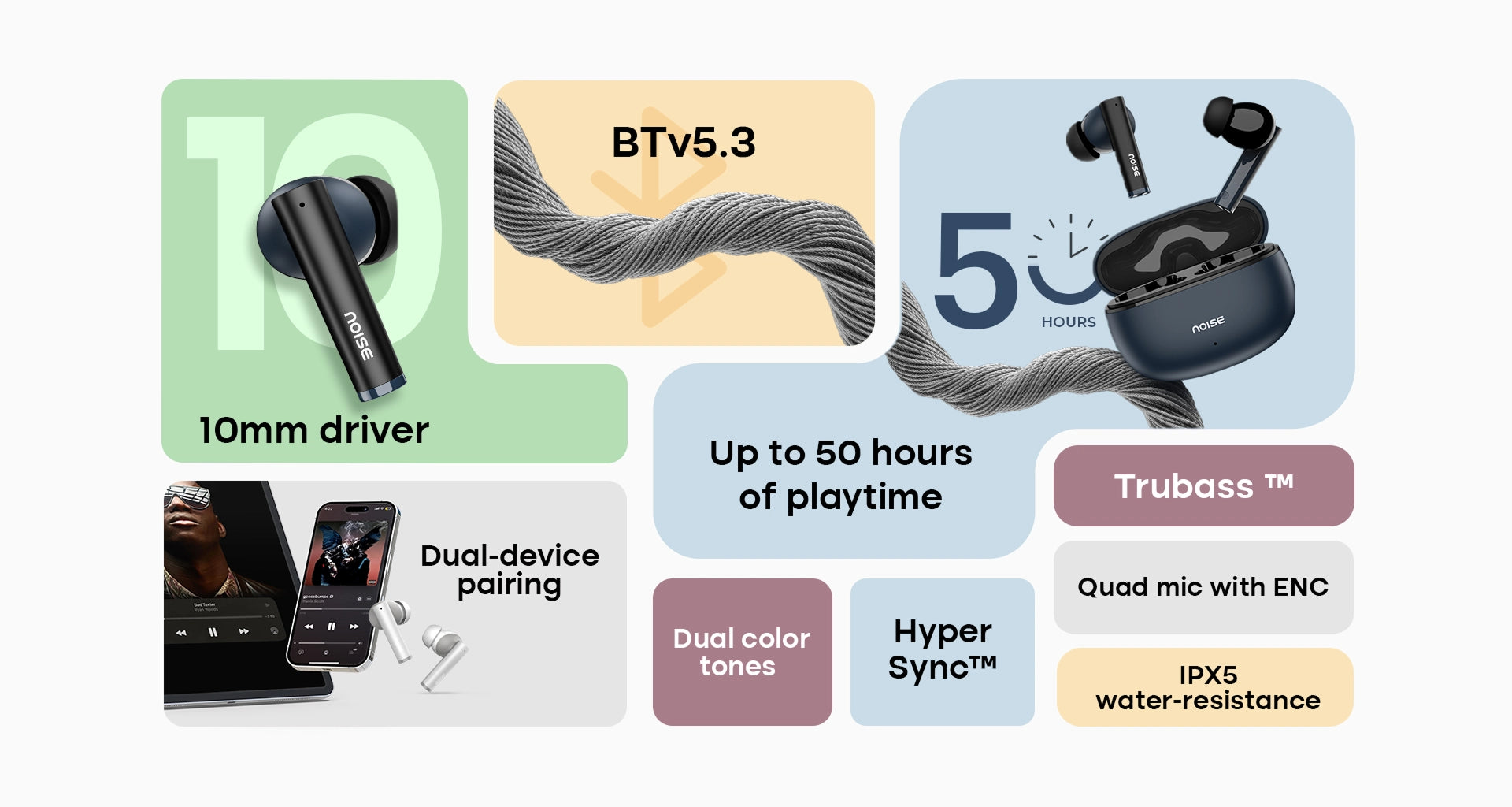 - Offers up to 7 hours of playback per earbud with ANC enabled, and a total of up to 28 hours using the charging case—keeping your music going all day.